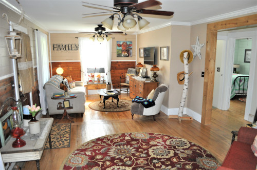 The intimate 1940's Farmhouse blends the romance and charm of the past with the comfort and convenience of modern accommodations. The cozy ambiance interwoven with the serene mountain views ensures stress free accommodations for even the most weary traveler.